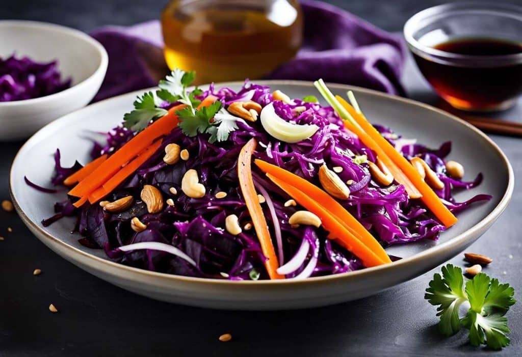 Recette facile : salade de chou rouge à l'asiatique pour une entrée croquante